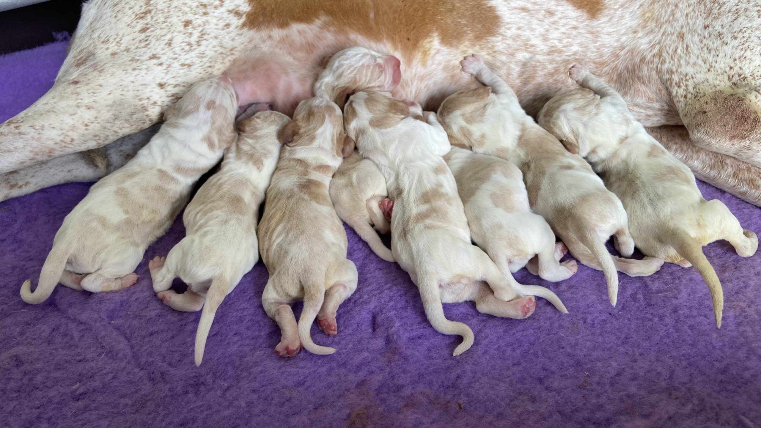 5-11-2024 De pups en moeder doen het fantastisch, alles volgens het boekje. Inmiddels krijgen de pups hun echte Bracco uiterlijk en het is geweldig om ze zo te zien opgroeien. We hebben op dit moment nog een teefje beschikbaar.