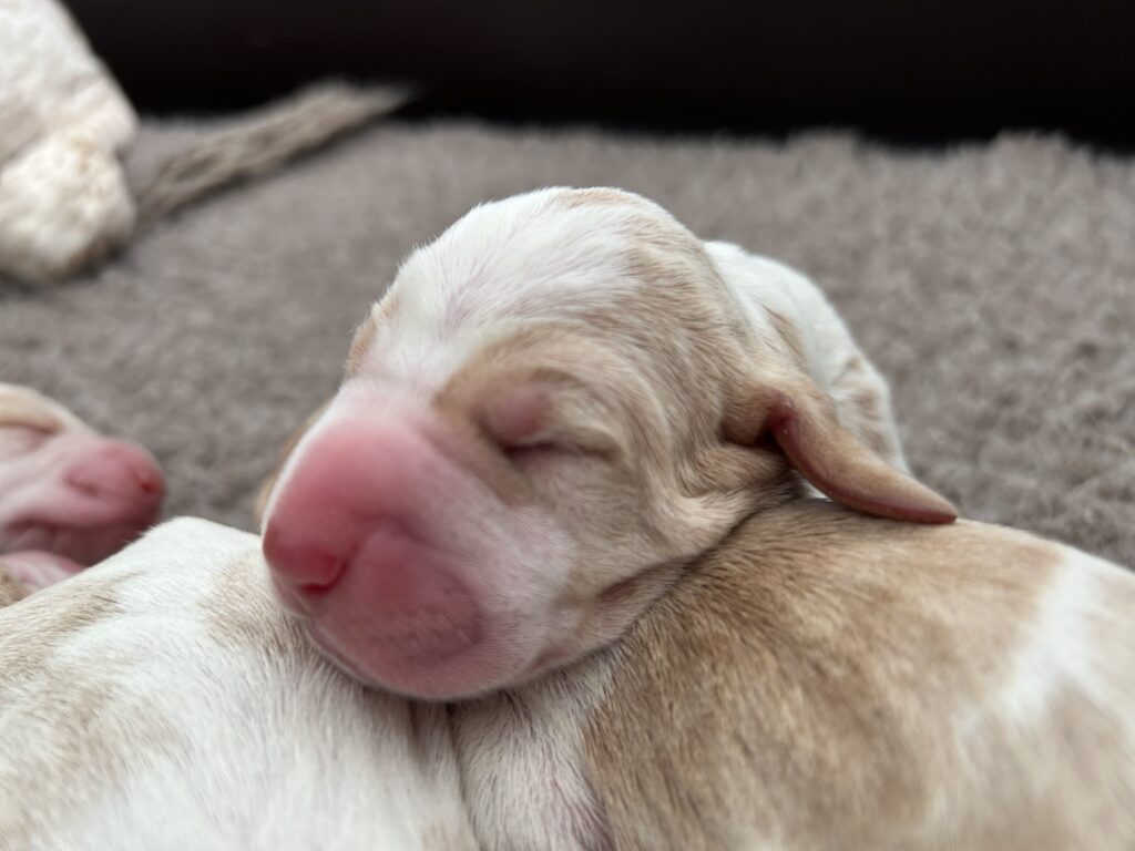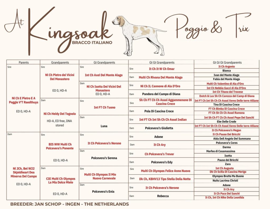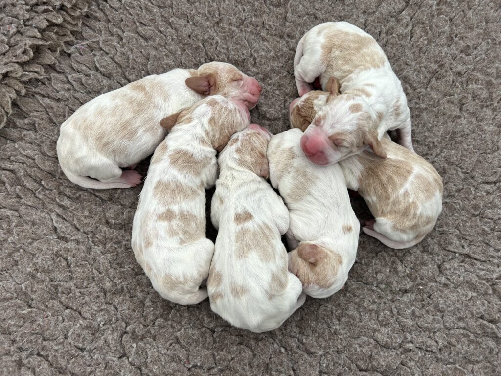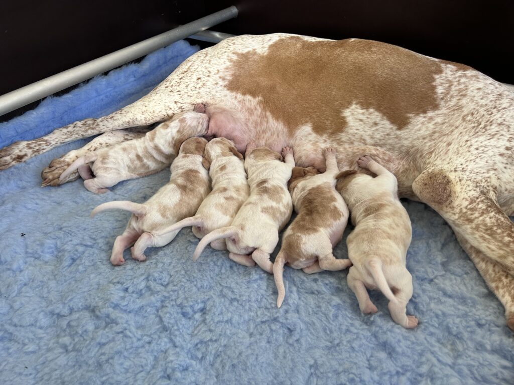 Op 2 maart 2026 was het dan zover, onze Trix kreeg haar pups. Met het maken van de echo zag de dierenarts 6 pups, en hij had gelijk! Trix is moeder geworden van 6 flinke pups. We zijn erg blij met de komst van onze Bracco Italiano-puppy’s. Binnenkort volgen meer updates en nieuws!